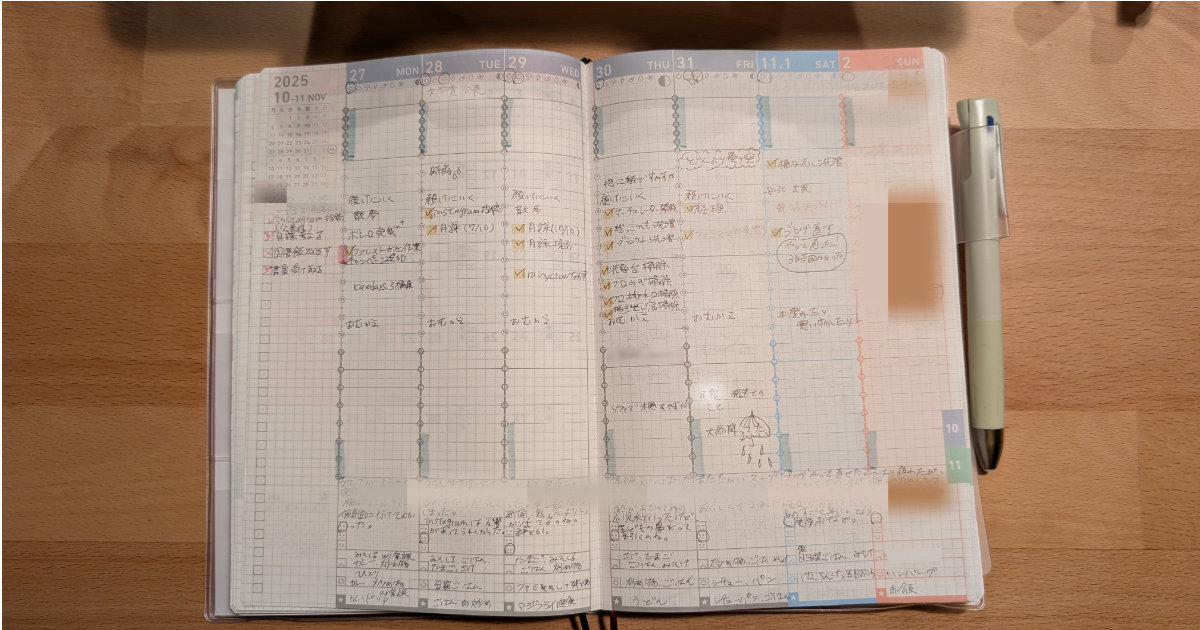 11月1日が含まれる週から使い始められるようで、2026年の手帳は2025年10月27日から使い始めることができました。